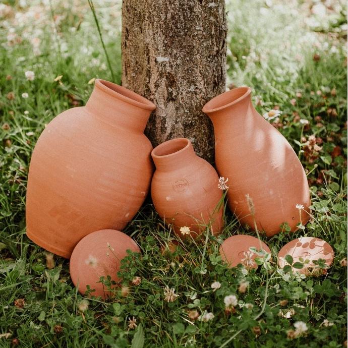 Système d'arrosage automatique en céramique micro-poreuse permettant de prolonger l'apport d'eau et de nutriments ; grâce à la porosité de la céramique du contenant l'eau se diffuse lentement sous terre, au plus près des racines. Idéal pour pots et jardinières géotextiles de préférence et/ou à disposer directement dans le sol de vos potagers au plus près de vos plantes les plus gourmandes en eau.